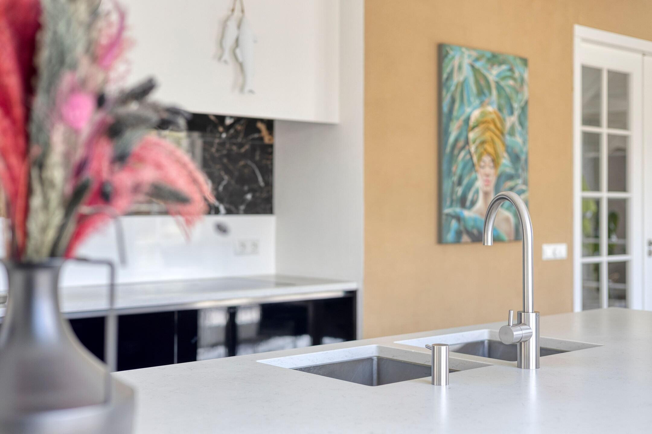 Bij binnenkomst ervaart u direct de kwaliteit en ruimtelijkheid. De begane grond is ontworpen met oog voor zowel representativiteit als comfort. De royale woonkeuken, vervaardigd door Lodder keukens, vormt het hart van de woning en is uitgerust met hoogwaardige inbouwapparatuur en twee schuifpuien die een naadloze verbinding met de tuin creëren.