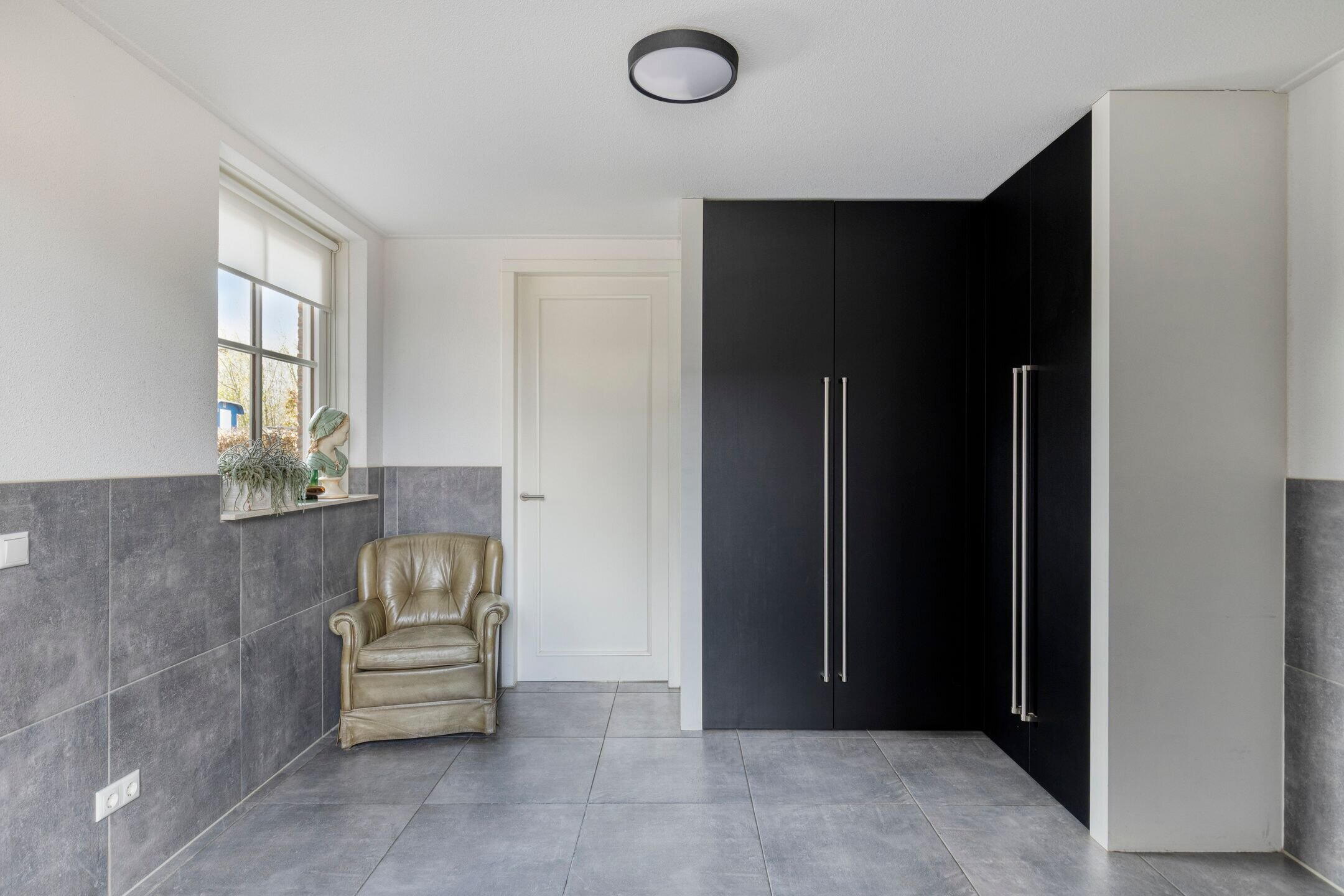 Aan de voorzijde bevindt zich een separate kantoorruimte, ideaal voor wie wonen en werken wil combineren zonder concessies te doen aan privacy of professionaliteit.