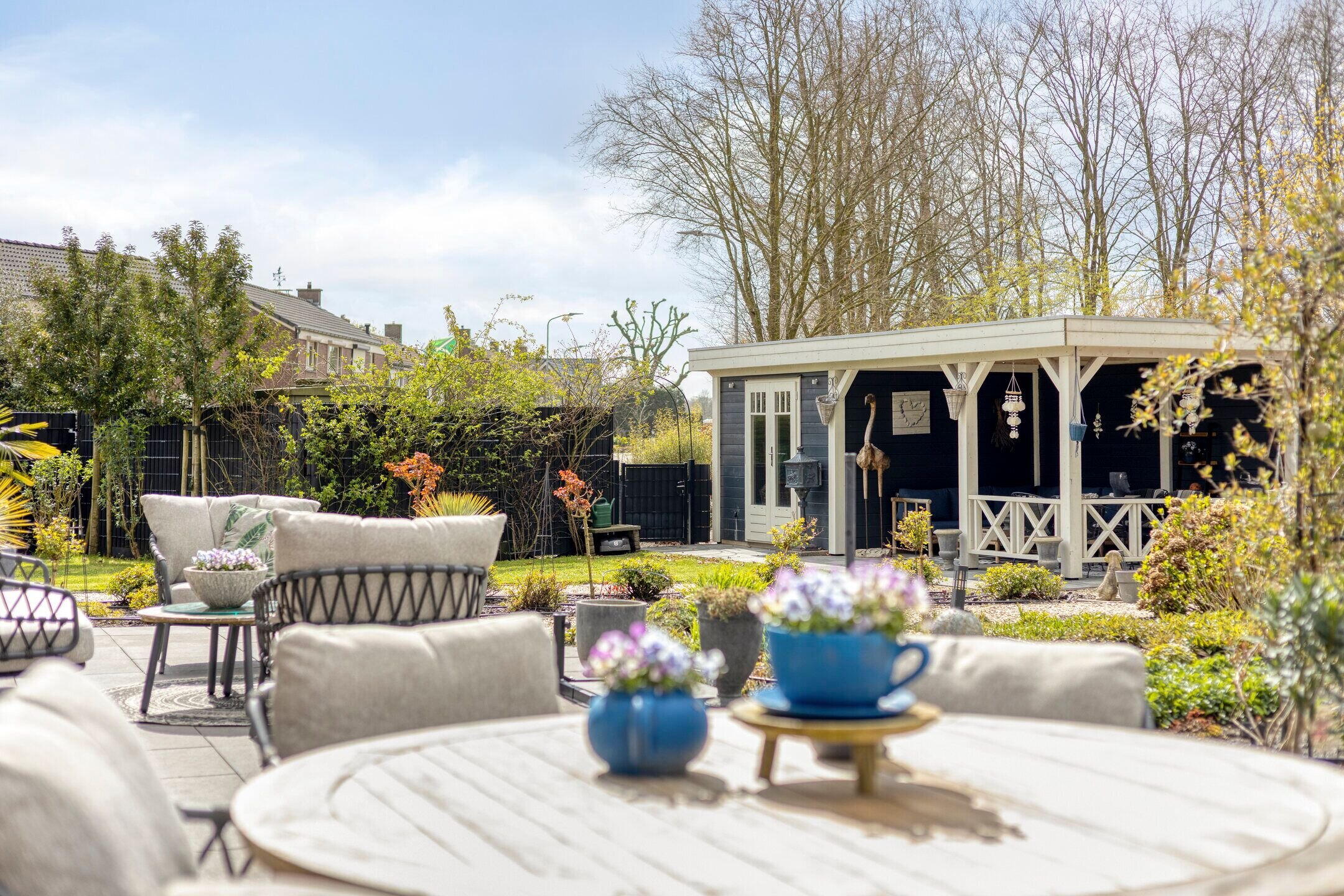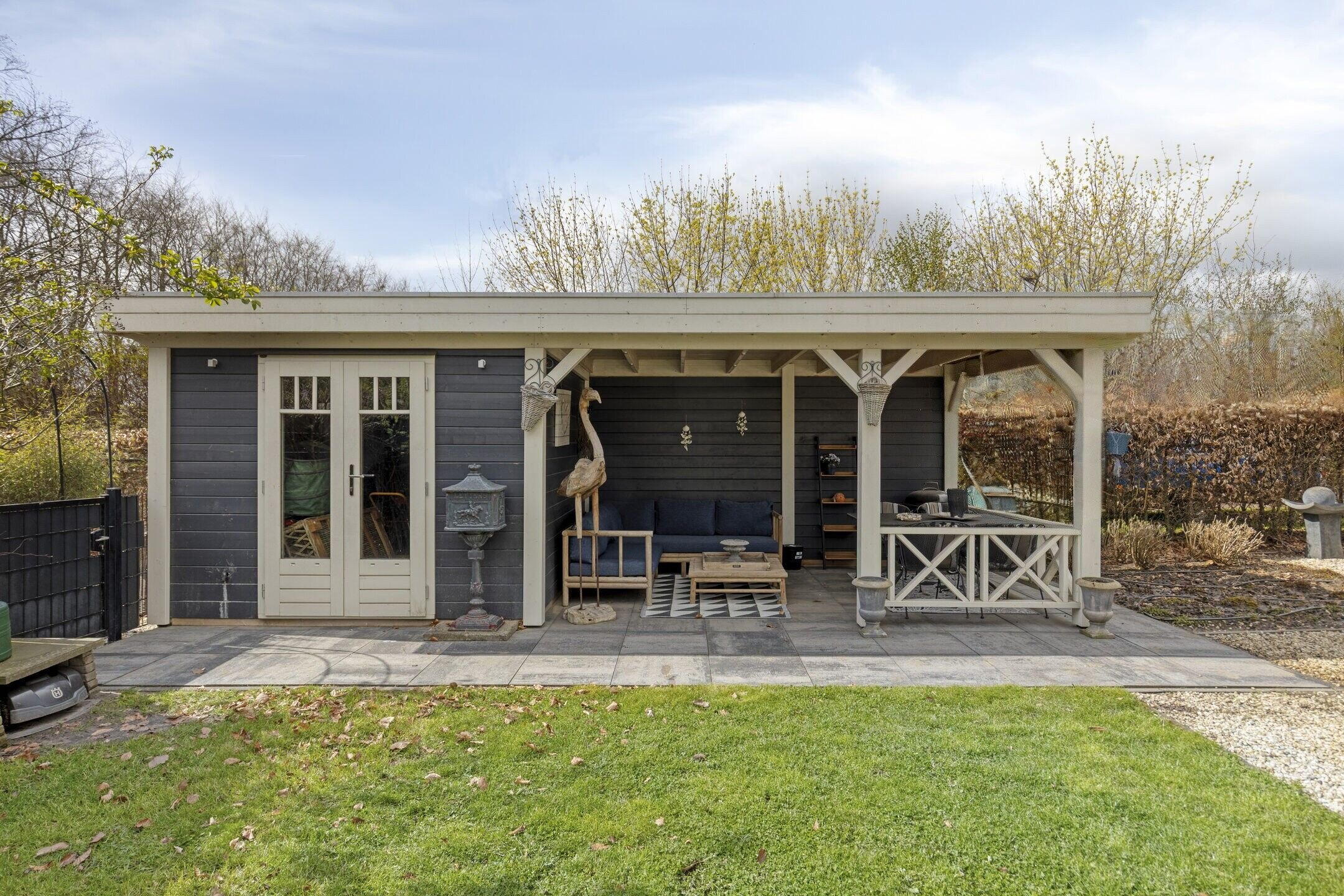 Daarnaast beschikt de woning over een aangebouwde, volledig geïsoleerde garage met maatwerk inbouwkasten en een vrijstaande houten berging met overkapping (2021).